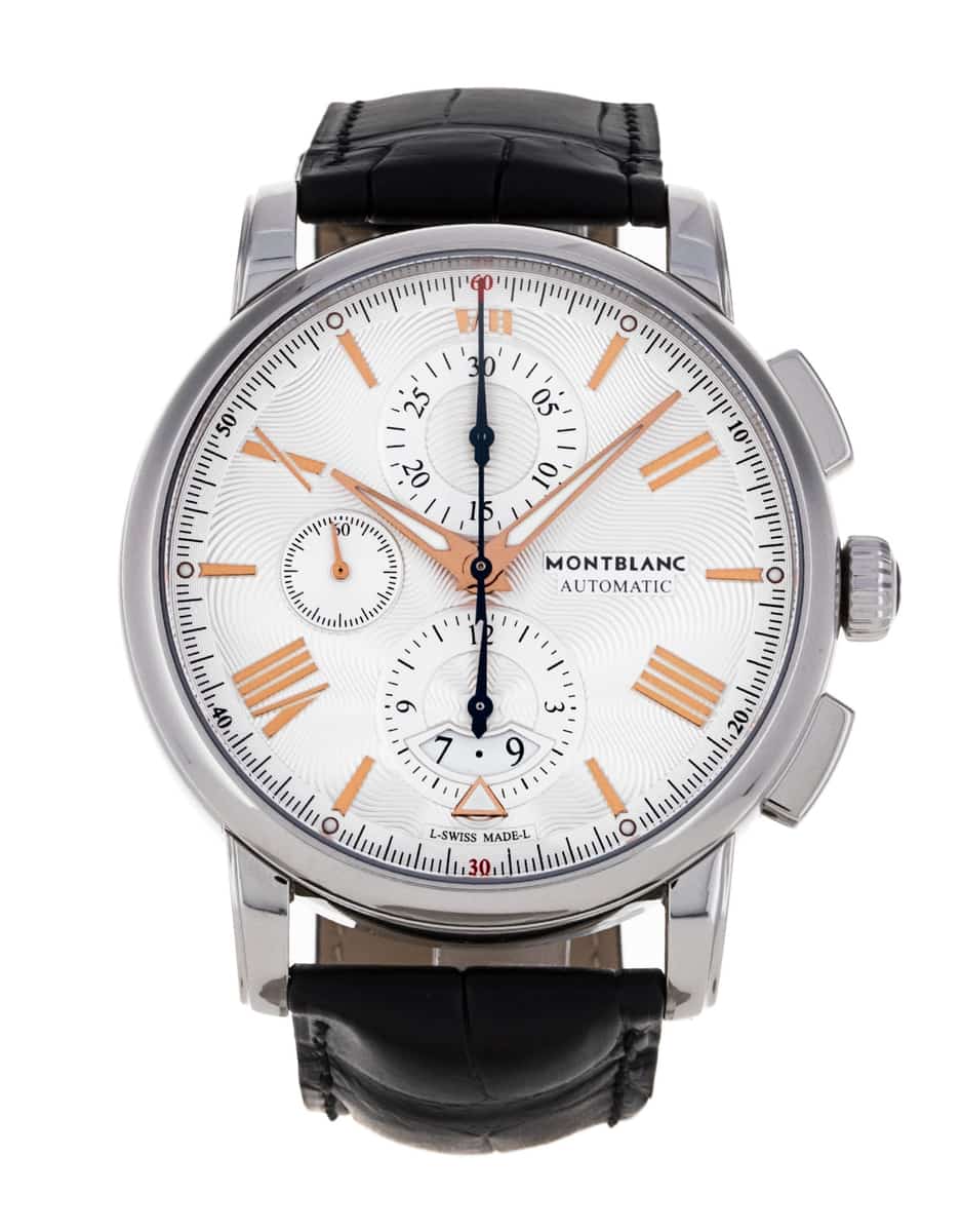 This Montblanc Star 4810 114855 has a silver roman numeral dial and a leather strap. This Montblanc has undergone a thorough inspection of water resistance, accuracy, functionality and condition to determine the level of reconditioning required to meet our strict standards. It has also been referenced against technical documents and manufacturer records where available to ensure authenticity and a clean history. All our watches have a 24-month warranty for your peace of mind.